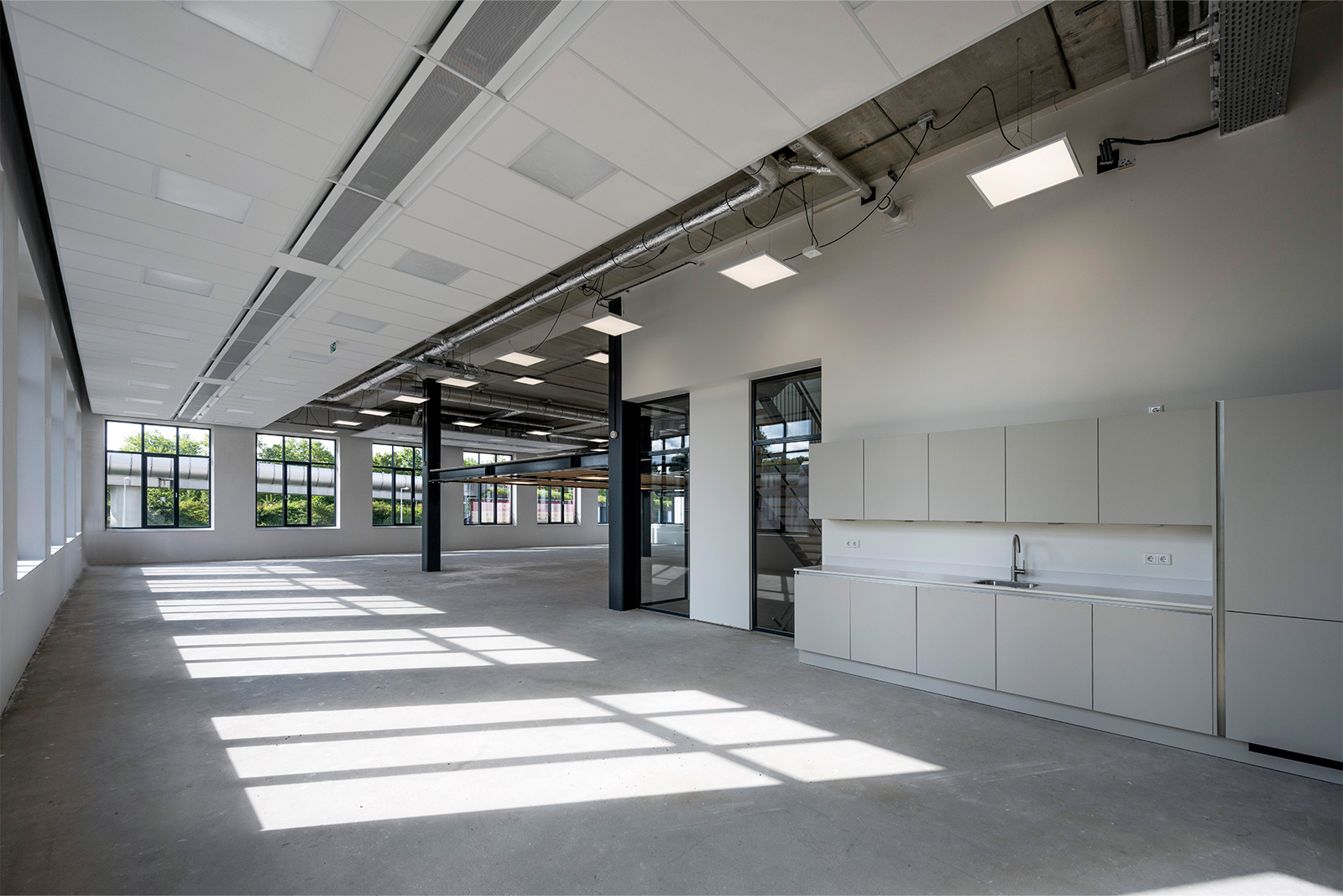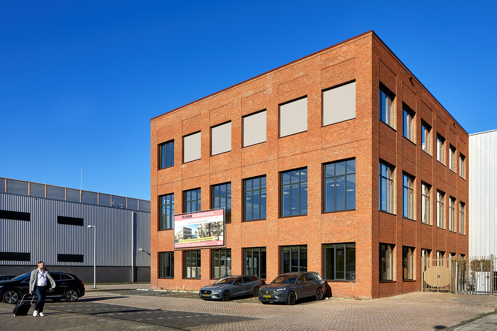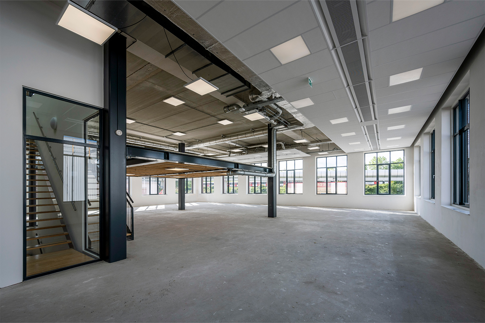 Het kantoorgebouw springt in het oog met een rode bakstenen façade en de grote raampartijen aan drie zijden die voor veel natuurlijk licht zorgen. De verdiepingshoogte van bijna 5 meter is ongekend voor een kantoorgebouw van dit formaat en draagt bij aan een gezonde en inspirerende werkomgeving. Op de begane grond is domoticabedrijf Loxone gevestigd en op de tweede etage Solyne, een projectbureau voor professionals. De eerste etage is nog beschikbaar.